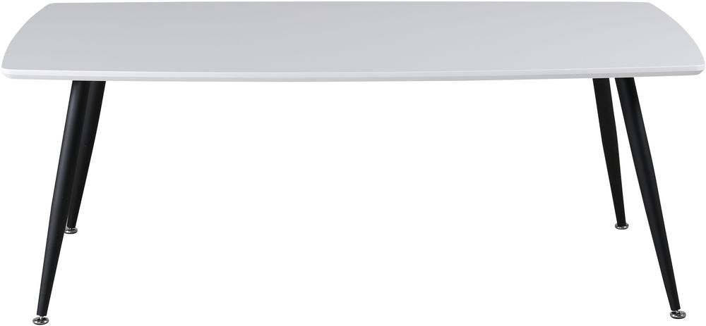 Soffbord med toppskiva av vit MDF och metallben av svart metall.