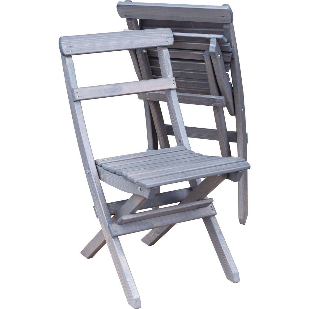 Stol i klassikt utförande i grålaserat trä, hopfällbar så den smidigt kan förvaras när den inte används.