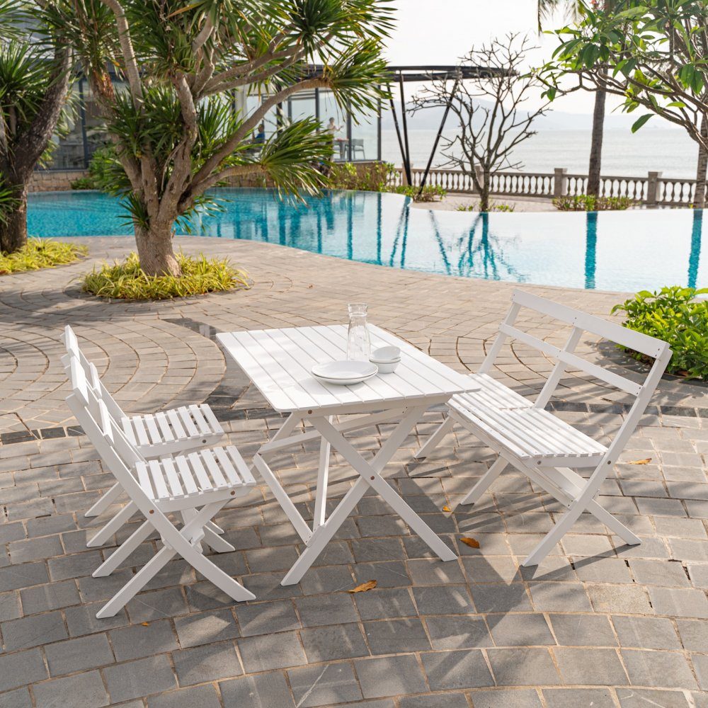 Matbord i klassikt utförande i vitlaserat trä, passar bra in på de flesta uteplatser. Passar perfekt till både serien Haväng och Knohult.