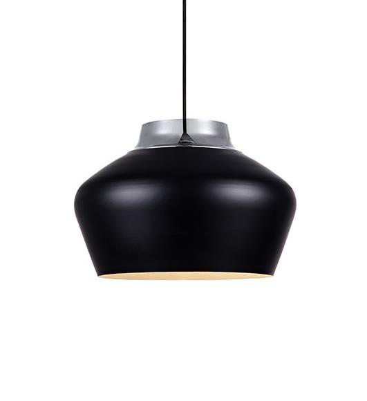 Taklampa Kom med en stilig design. Skärmen är tillverkad i svart metall med detaljer i krom. 1,5 meter textilklädd kabel med krokupphäng. Takkontakt klass 1 (Jordad) medföljer. Lampan passar perfekt in på flera platser i hushållet. Stor (E27) lamphållare för max 60W glödljus eller motsvarande styrka i halogen, lågenergi eller LED.