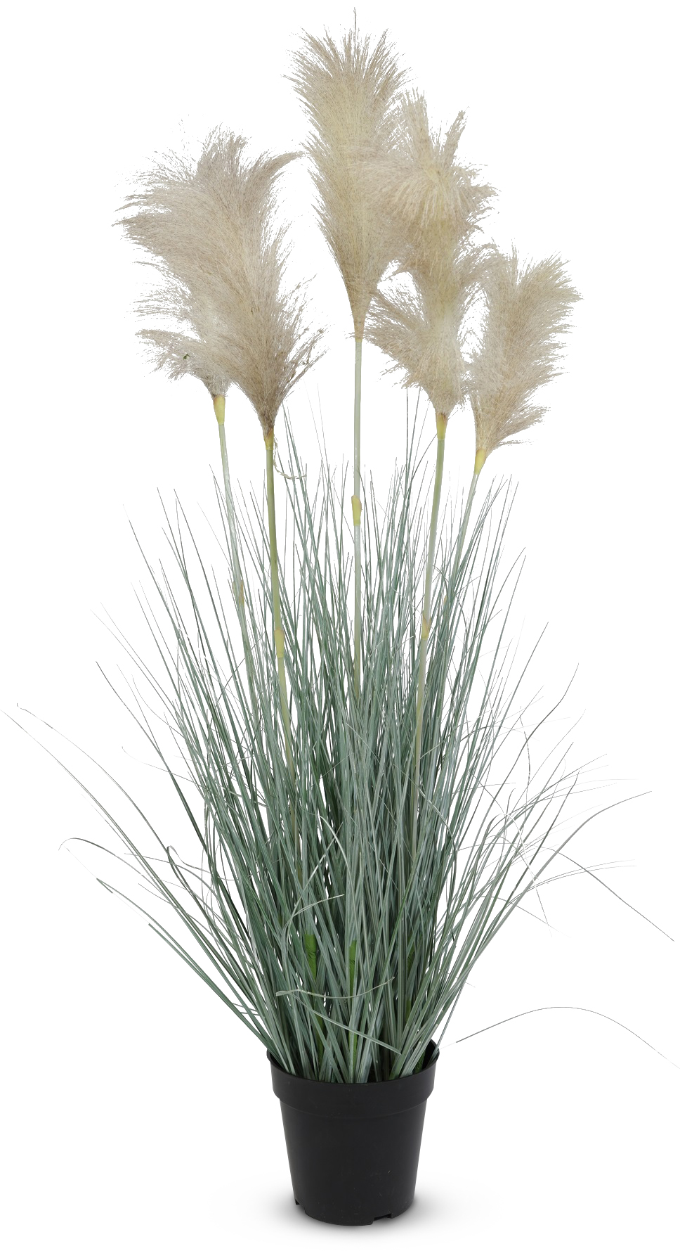 Ett konstgräs med pampagräs komplett i en svart plastkruka. Totalhöjd 82 cm hög.