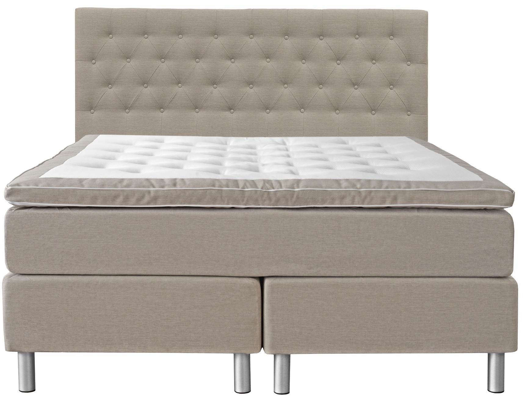 Nova kontinentalsäng är ett komplett sängpaket med lyxig 7-zons pocketfjädring och en elegant pikerad sänggavel klädd i beige tyg. En dubbelsäng i klassisk men samtidigt exklusiv design som kombinerar hög kvalitet med utmärkt sovkomfort.