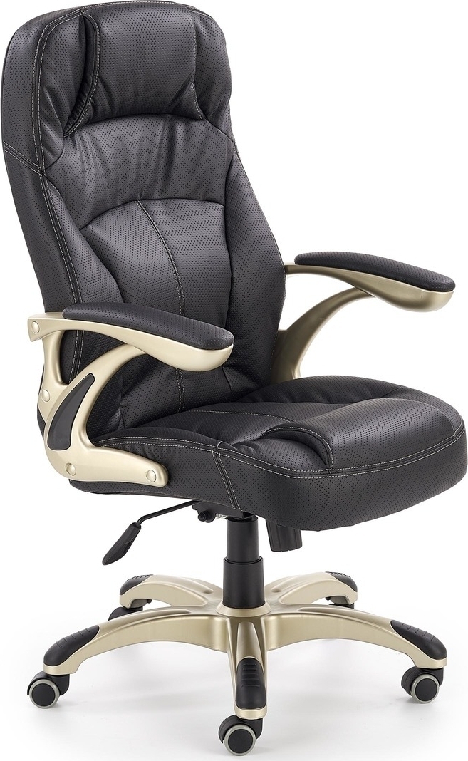En härligt kontorsstol med en modern design. Tillverkad i metall med detaljer i svart plast, och en mycket behaglig klädsel i svart konstläder. Höj- och sänkbar sits med hjälp av spaken under sitsen och lätt att förflytta tack vare hjulen på stjärnfoten.