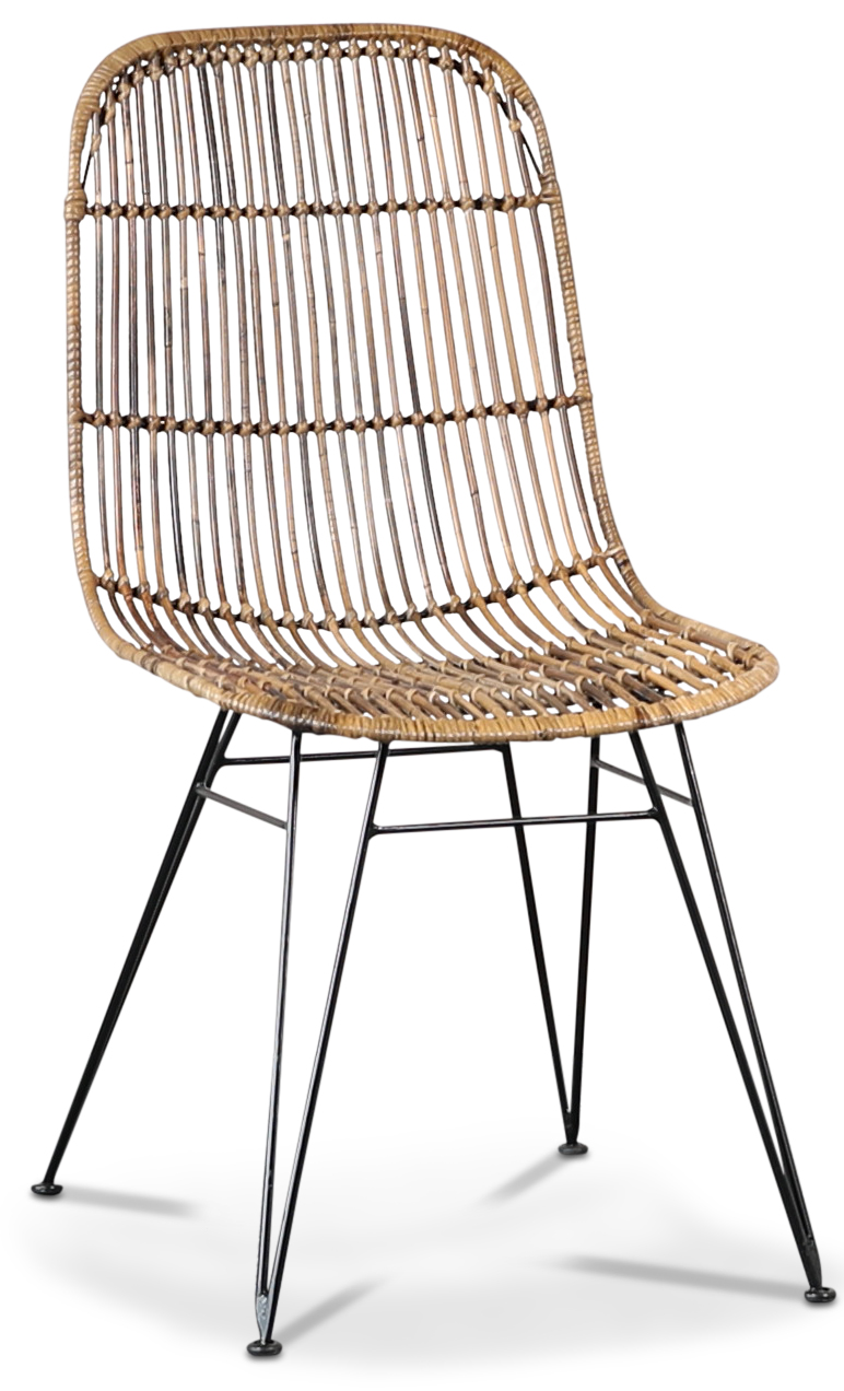 Stilren stol, tillverkad i häftigt brun rotting och svartmålade metallben. Passar perfekt in i hemmet till flera användningsområden, exempelvis till matbordet eller fikaplatsen. Testa att kombinera med flera möbler från samma serie för ett snyggt och komplett set.