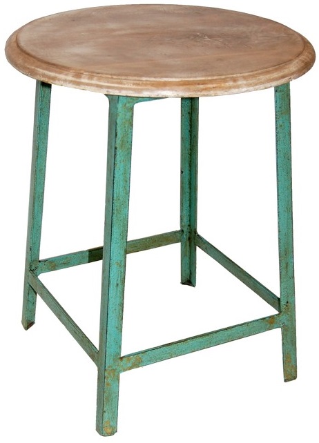 Nätt men robust pall med underrede i mintgrön metall och sits i trä.