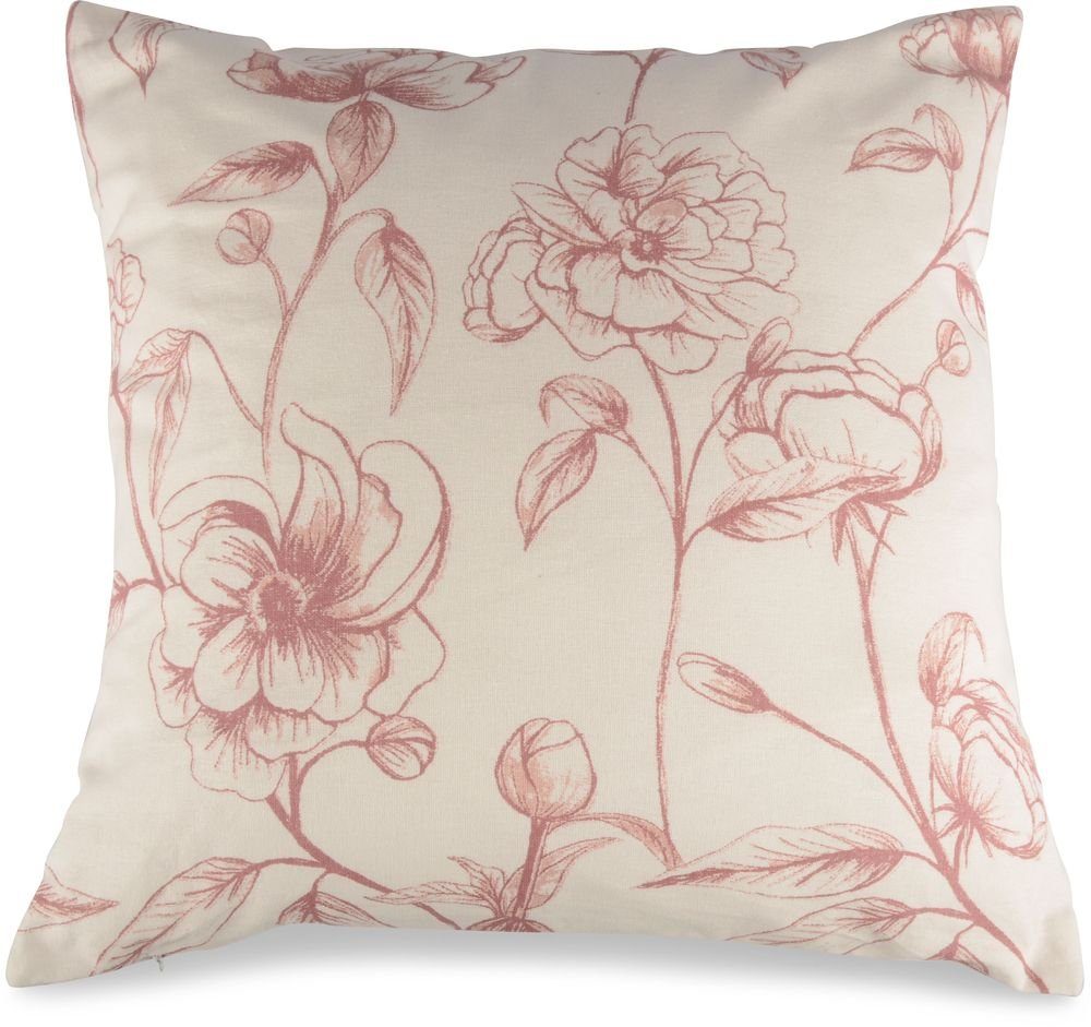 En mysig och snygg kudde i vit textil med mönster av blommor. Stoppad med bomull.