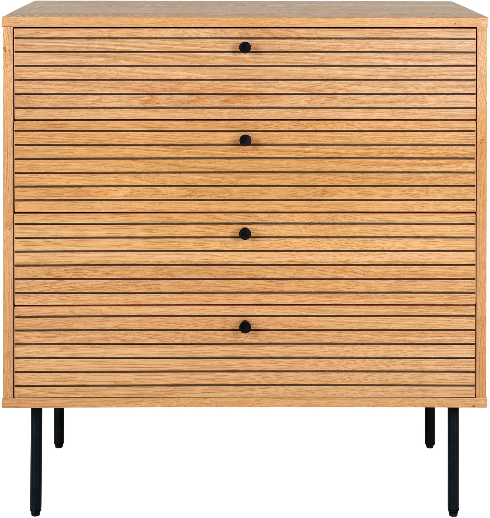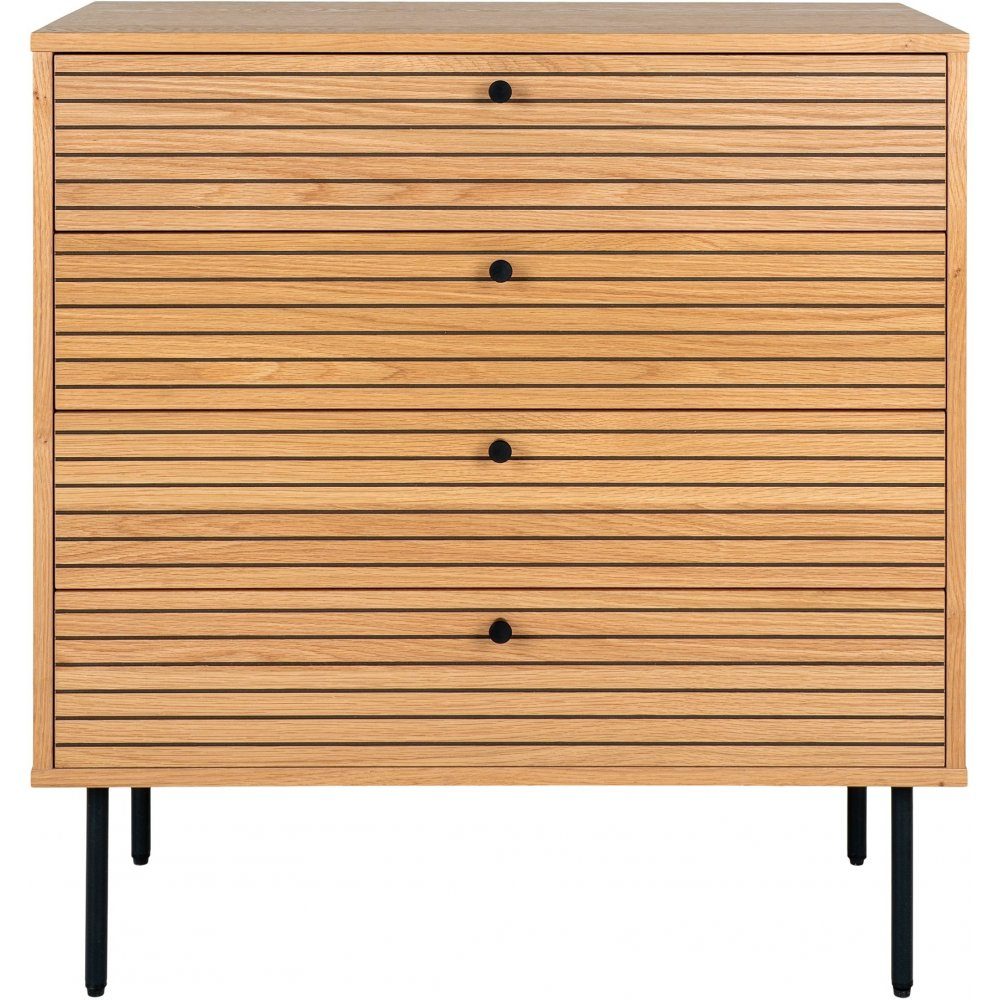 Byrå av MDF, ekfáner och stål. Levereras omonterad.