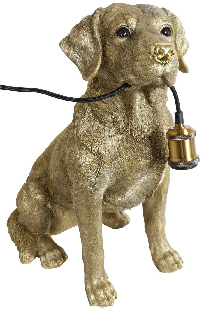 En fräck stor bordslampa, guldfärgad Labrador.