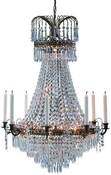 Kristallkrona Läckö med en elegant design. Den robusta stommen ät tillverkad av antikbehandlad metall med hela 8 stycken stearinljushållare och mycket vackra prismor i hög brilliant kvalitet. Kedjelängden är 1,5 meter. Små lamphållare (E14). Max 40W glödlampa eller motsvarande styrka i halogen, lågenergi eller LED. Lampan monteras simpelt på plats och passar perfekt in i flera olika miljöer.