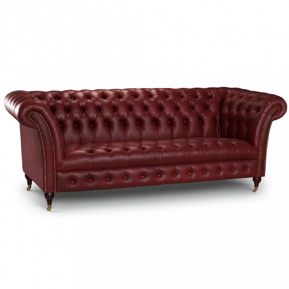 En gedigen soffa med klassisk brittisk design som blir ett elegant blickfång i såväl vardagsrum som kontor. Den djuphäftade ryggen och sitsen ger både karaktär och god sittkomfort. Perfekt för dig som vill ha en exklusiv Chesterfieldsoffa till ett förmånligt pris.