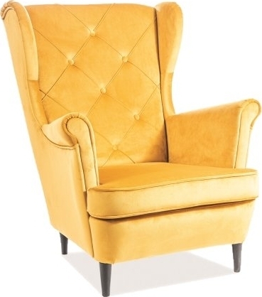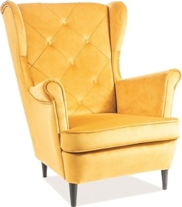 Fåtölj av bokträ och plywood. Klädd med polyestertyg.