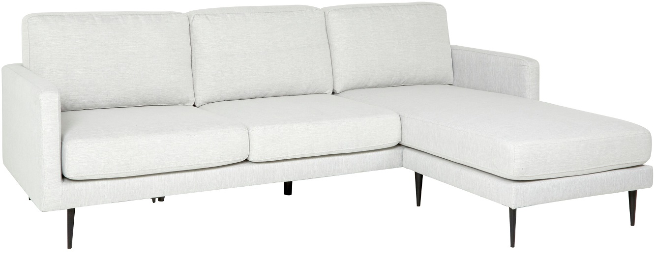 Laholms är en skön och härlig divansoffa i ljusbeige slitstarkt tyg med svarta metallben. Soffans sitt och ryggplymåer består av 35kg kallskum med fiberfill på toppen. Soffans divan går att placera på både höger eller vänster sida.