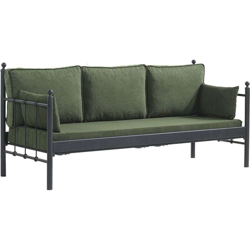 3-sits soffa av metall, klädd med chenille, polyester och bomull.