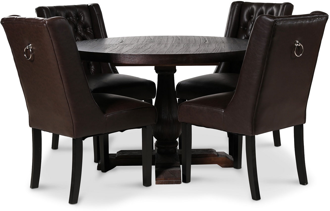 Medföljer gör också 4 st Windsor stolar i ett brunt PU med rygghandtag som en fräck detalj. Stolen är välarbetad och en av våra mest populära matstolar till Vintage-stilen.