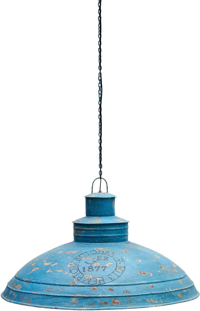 Taklampa i industriell stil, blåfärgad. Tillverkad av metall.