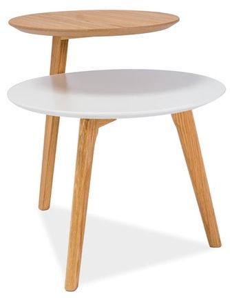 Ett fint lampbord med en stilren design. Underredet är tillverkat av trä med ek utförande och bordsskivorna är av en blandning av vitlackerad MDF och MDF med ek fanér.