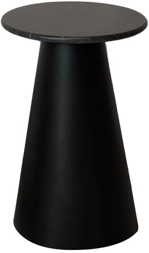 Runt lampbord med toppskiva i äkta svart mattpolerad marmor. Underrede i svartlackad metall.
