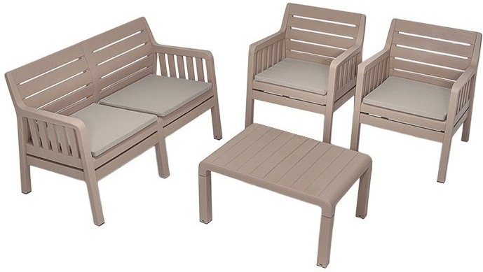 Lara loungegrupp med 2-sits soffa, 2 fåtöljer och bord - Cappuccino