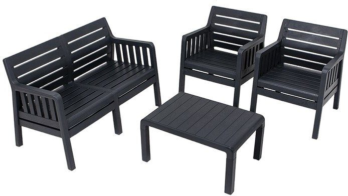 Lara loungegrupp med 2-sits soffa, 2 fåtöljer och bord utan dynor - Antracit