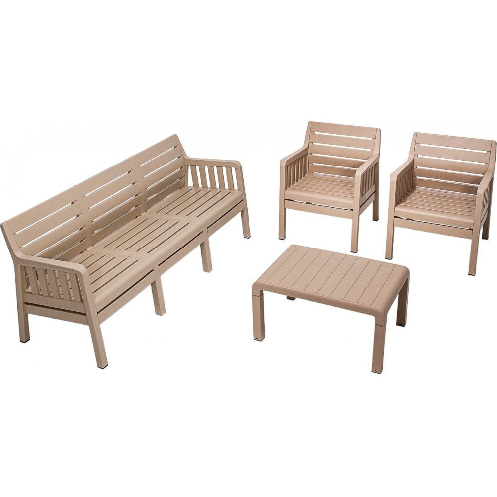 Lara loungegrupp med 3-sits soffa, 2 fåtöljer och bord utan dynor - Cappuccino