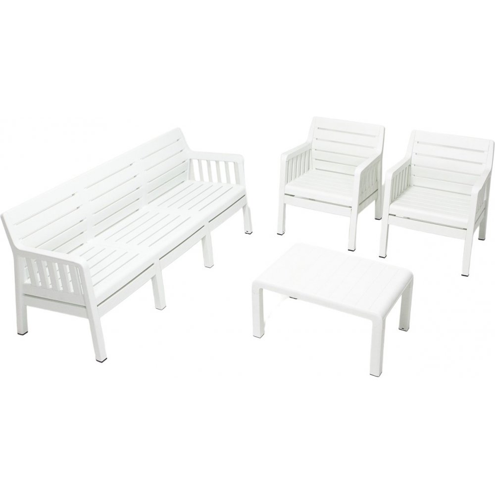 Lara loungegrupp med 3-sits soffa, 2 fåtöljer och bord utan dynor - Vit