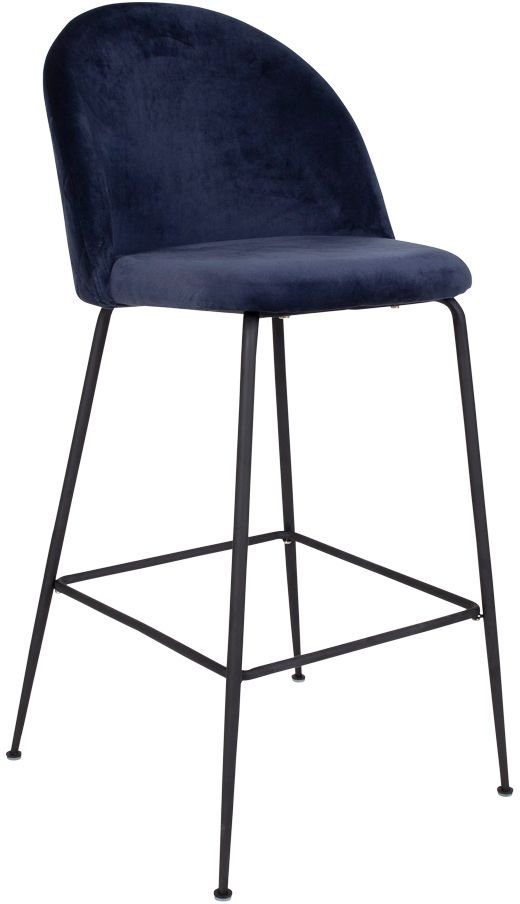 Barstol i blå velour med svarta ben.