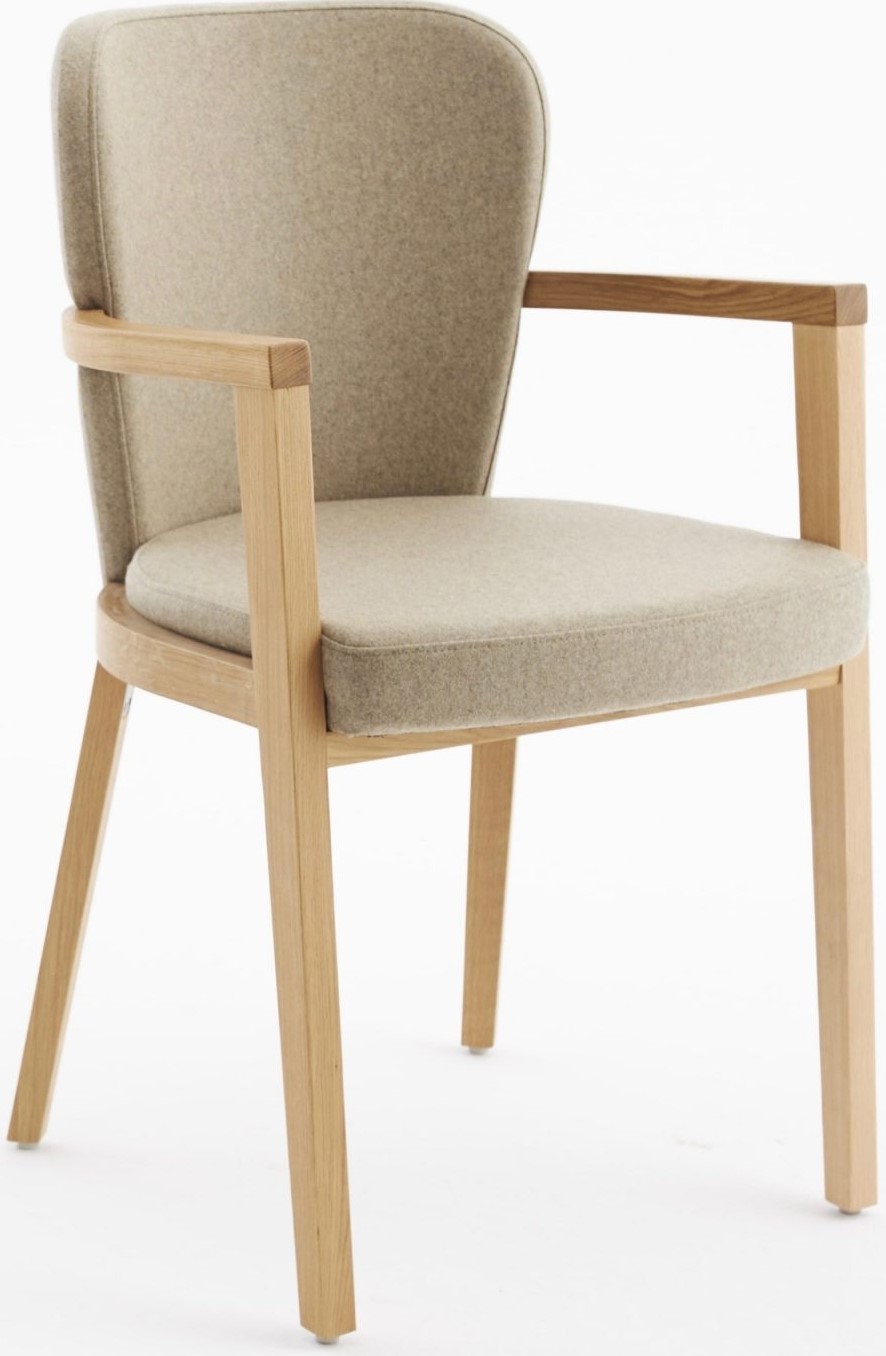 Karmstol i bok eller ek med valfri färg på stomme och klädsel. Levereras monterad.