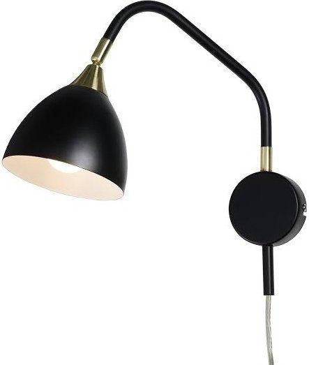Läza vägglampa i svart metall med mässingsdetaljer. Stilren och snygg vägglampa! Lampans arm är svängbar och lamphuvudet går att justera till valfritt läge!