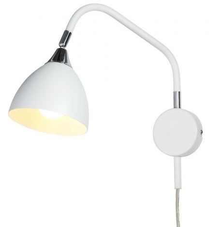 Läza vägglampa i vit metall med kromade detaljer. Stilren och snygg vägglampa! Lampans arm är svängbar och lamphuvudet går att justera till valfritt läge!
