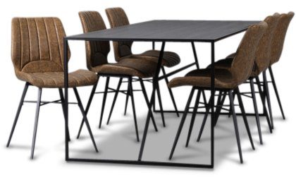 Lazio matgrupp 195 cm bord med 6 st Unique stolar - Svart/Brun