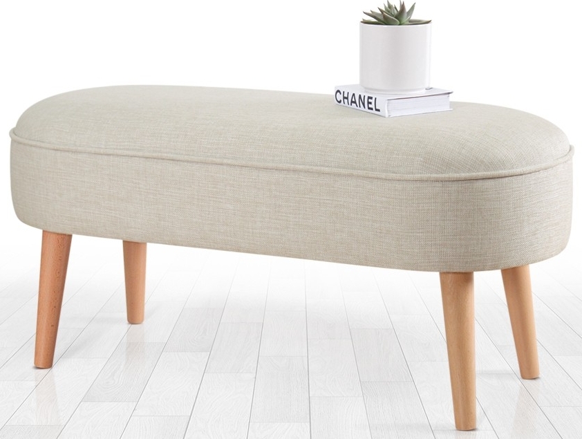Sittpuff av trä. Klädd med linne. Stoppning av skum.
