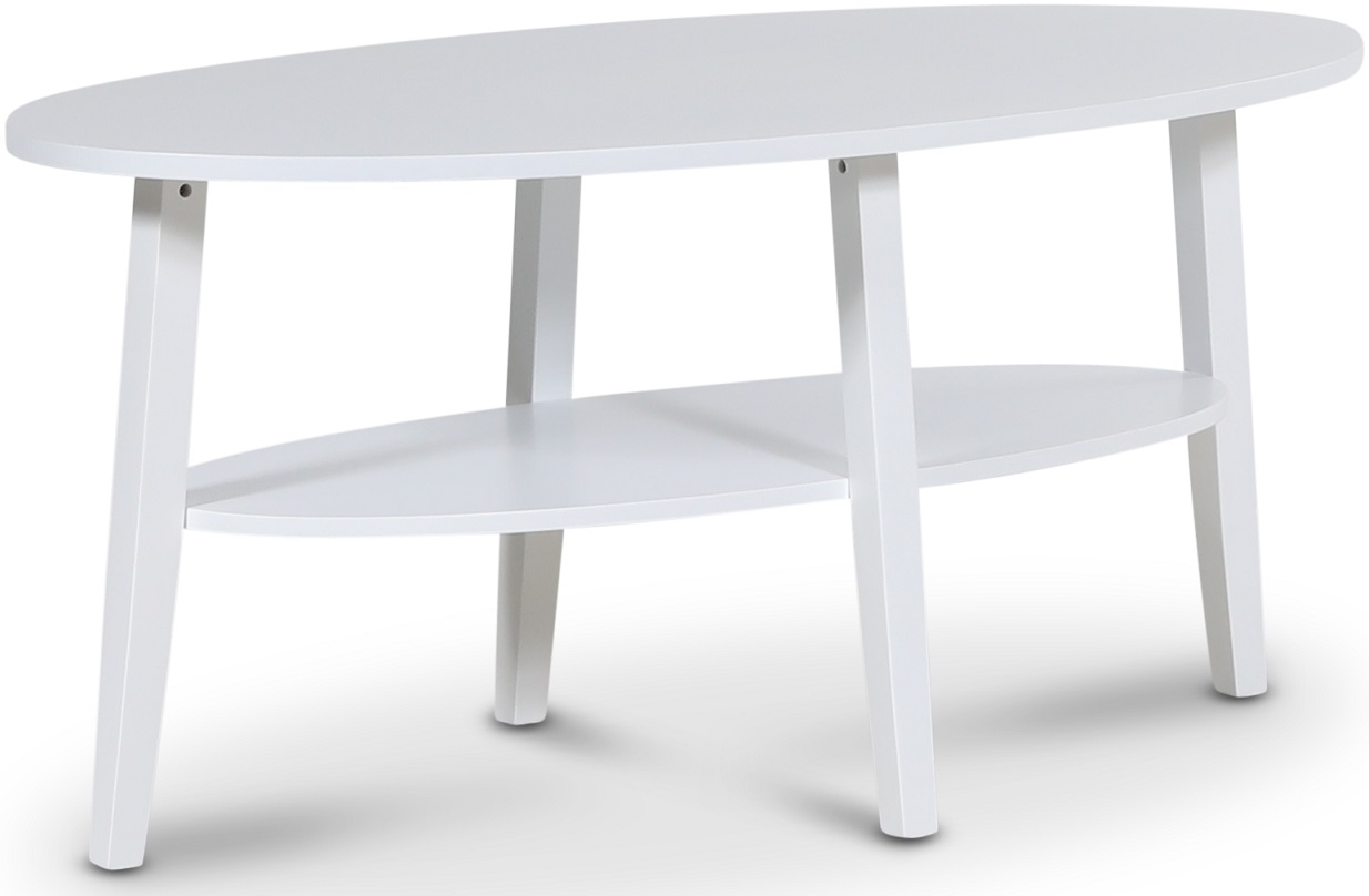 Stiligt soffbord i vit MDF/heveaträ med underhylla.