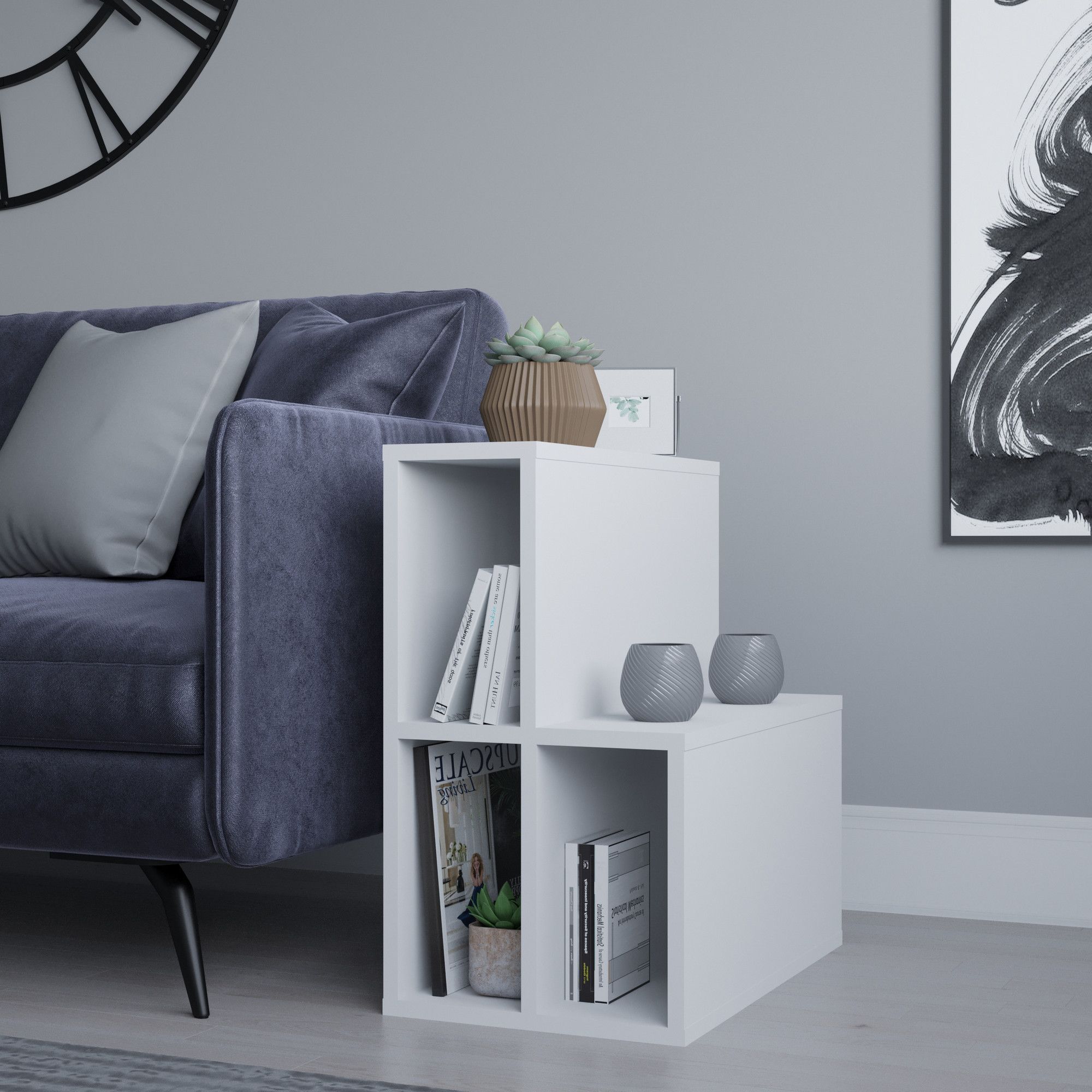 Sidobord av melaminbelagd spånskiva.