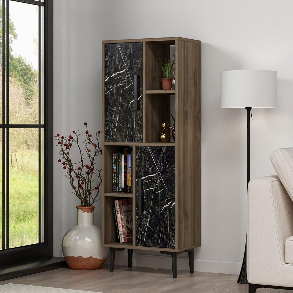 Leni skåp - Valnöt/svart marmor