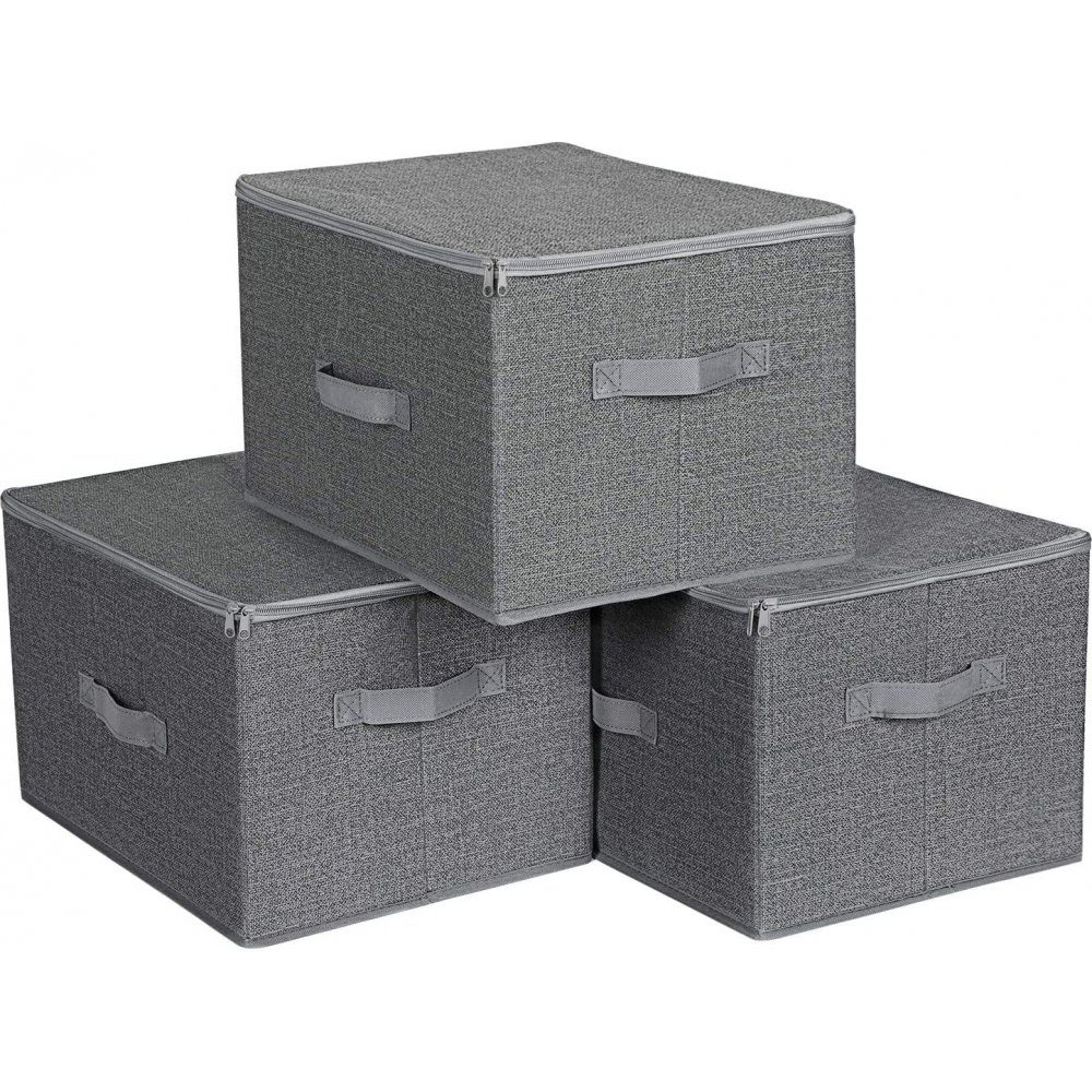 Förvaringslåda av kartong täckt med tyg. Set med 3 st. Går att vika ihop så de inte tar plats när de ej används.