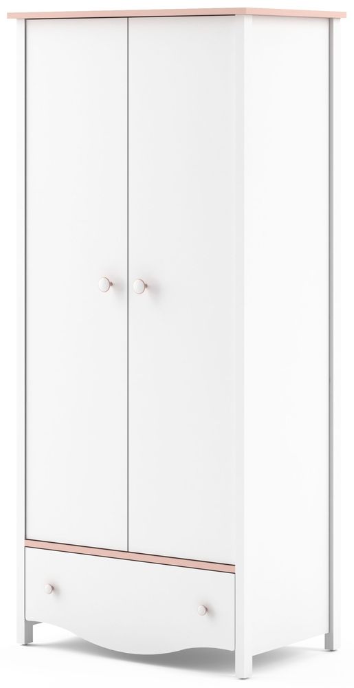Letitia Klädskåp för barn - Vit/rosa (med invändiga hyllplan)