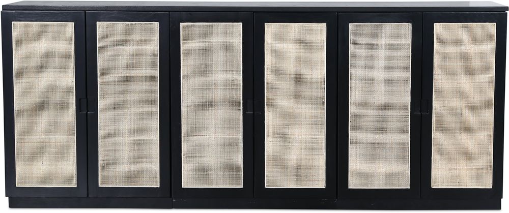 Level sideboard i svartbetsad ek med dörrar i rotting 210 cm