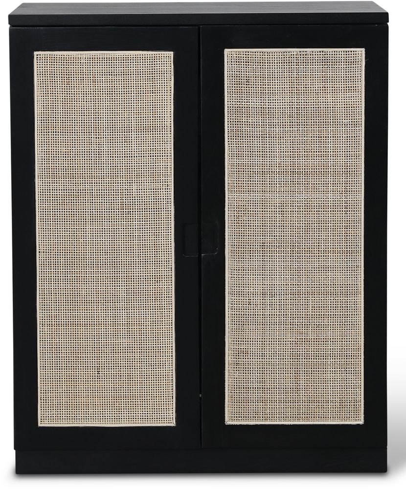 Level skåp i svartbetsad ek med dörrar i rotting
