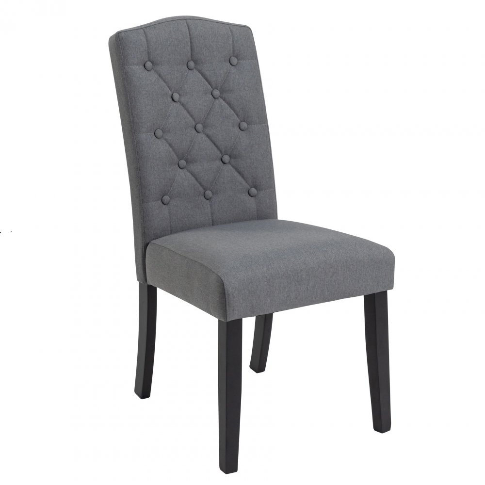 Den pikerade ryggen tillför en diskret, klassisk elegans som lyfter hela stolens uttryck. Det grå tyget är både stilrent och lättmatchat, vilket gör stolen enkel att placera i olika inredningar.