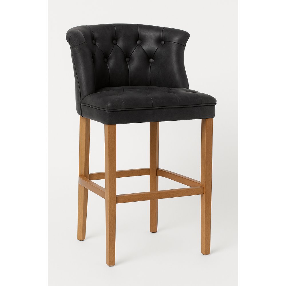Milton barstol kombinerar klassisk elegans med modern komfort och blir snabbt en stilfull favorit i köket eller vid baren. Sitsen är klädd i en exklusiv svart läderimitation som både känns lyxig och är lätt att hålla ren. Det quiltade ryggstödet med knappar ger stolen ett sofistikerat uttryck och skapar en bekväm sittupplevelse med bra stöd.