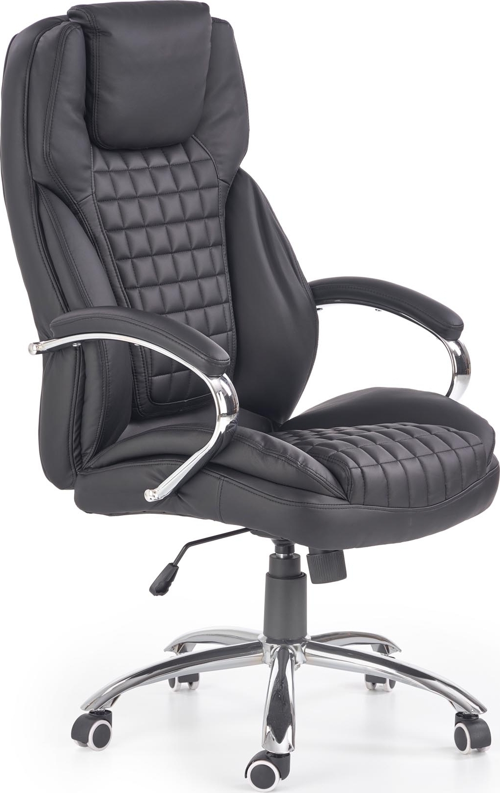 En mysig kontorsstol med en lyxig design. Kontorsstolen är tillverkad av metall och plast med en lyxig och mycket behaglig klädsel av konstläder för maximal komfort. Stolens höjd är lätt justerbar med hjälp av spaken under sitsen och stolen är även lätt att förflytta tack vare hjulen på stjärnfoten.