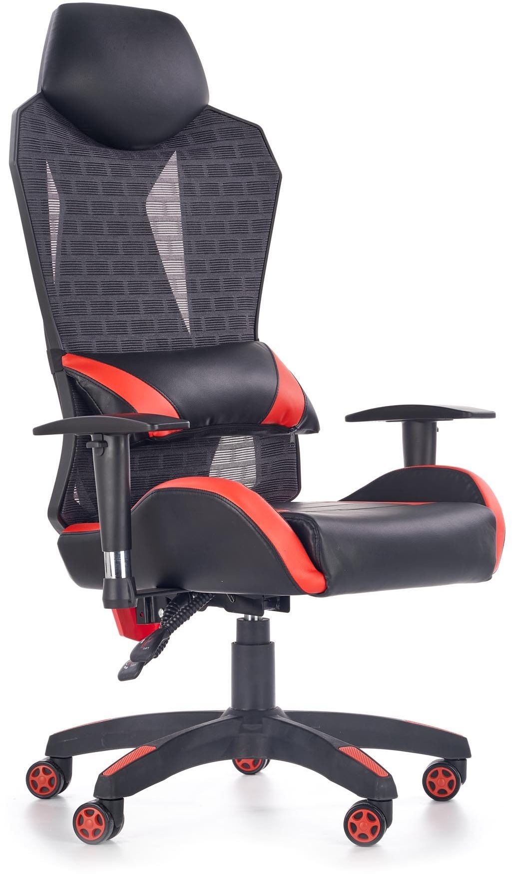 En snygg gamingstol med en modern design. Kontorsstolen är klädd med ett mycket behagligt konstläder och mesh tyg för maximal komfort. Stolens höjd är lätt justerbar med hjälp av spaken under sitsen och stolen är lätt att förflytta tack vare hjulen på stjärnfoten. Justerbar svankdyna.