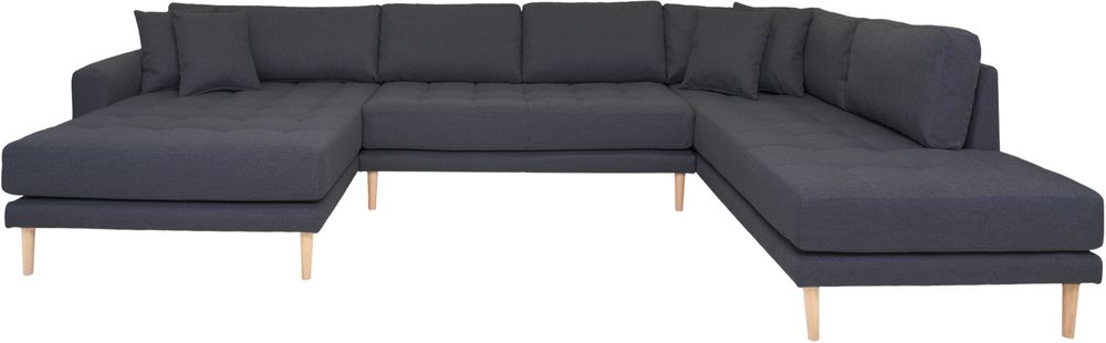 Vänstervänd soffa i mörkgrått. 4 st kuddar ingår.