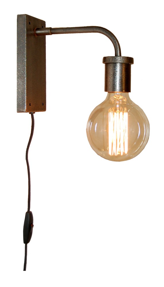 Nätt vägglampa i zinkfärgad metall inklusive svart sladd med kontakt.