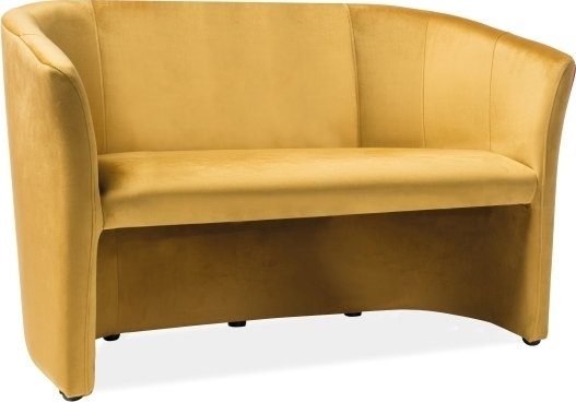 Soffa i plywood. Klädd med polyestertyg i sammetsimitation. Flamsäkert tyg.