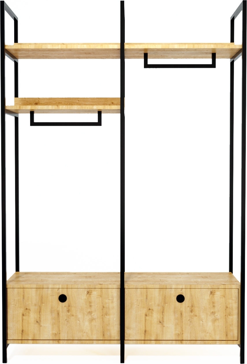 Förvaringsmöbel av metall och trä.
