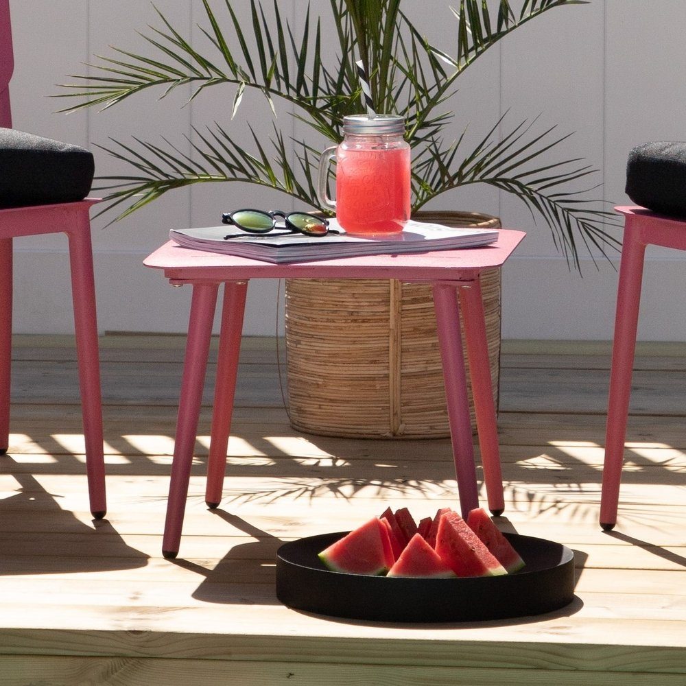 Ett praktiskt sidobord är kanske precis vad din uteplats behöver? Det här nätta sidobordet från serien Lina passar perfekt både som ett avlastningsbord eller som extra bordsyta när det behövs. Bordet är tillverkat i det slitstarka materialet aluminium i en smäcker rosa kulör. Matcha till din loungegrupp och du är good to go! Mått: 40x40.