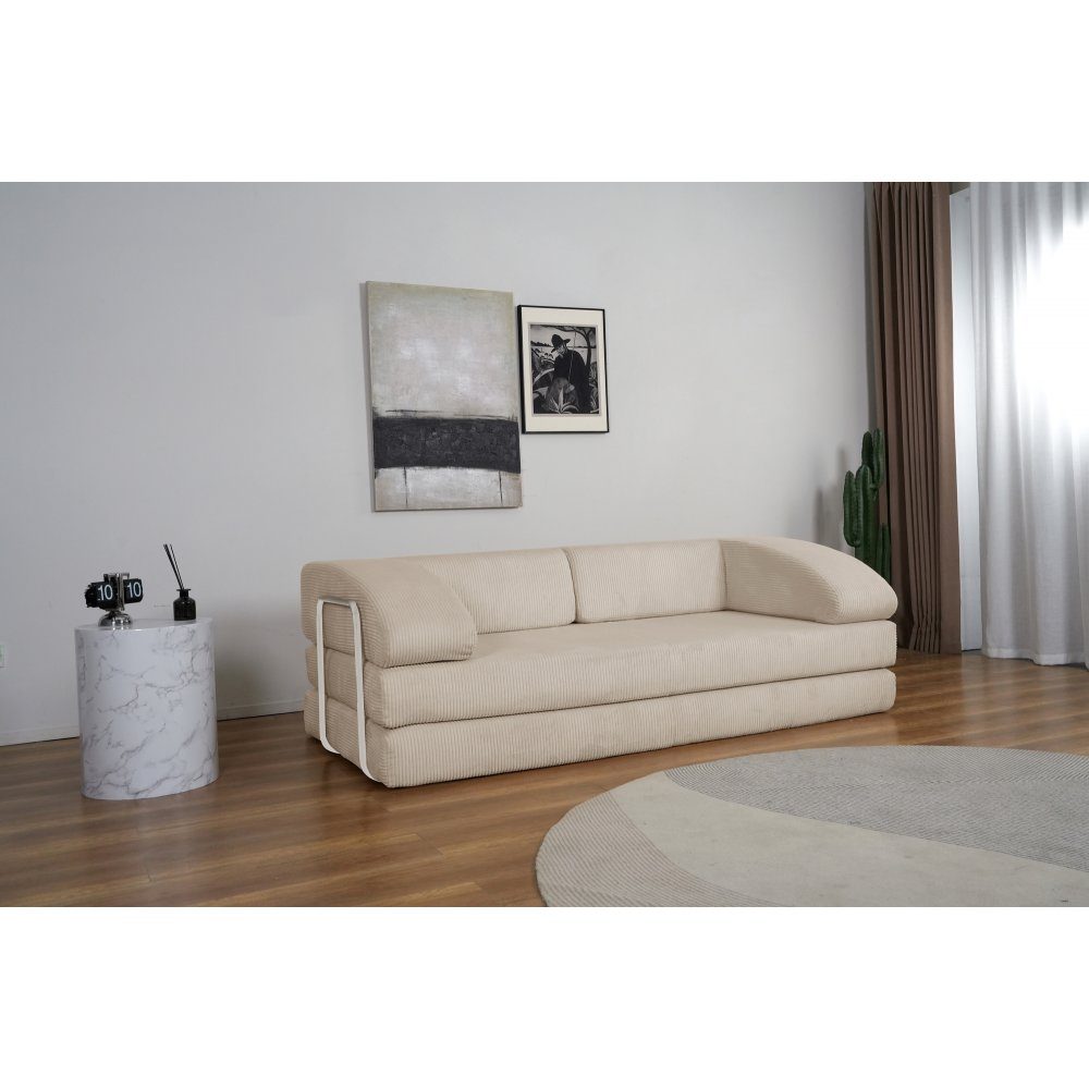 Lincoln 3-sits bäddsoffa i beige manchester. Lättplacerad soffa med bäddfunktion. Bäddmått 200x200 cm.