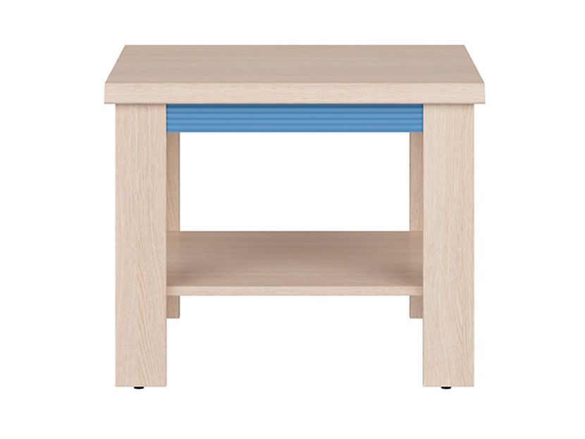 Ett fint mindre bord i ek med räfflade detaljer i blått. Bordet har en praktisk hylla undertill för förvaring av t.ex. tidningar. Lindby möbelserie passar bra för barn såväl som ungdomar och hjälper till att skapa praktisk förvaring och utrymmen i deras rum.