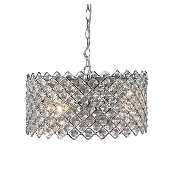 Taklampa Lindö med en stilfull design. Tillverkad i kromad metall med vackra brilliant prismor. Liten lamphållare (E14). Max 40W glödljus eller motsvarande styrka i halogen. 1,5 meter sladd med takkopp för krokupphäng. Lampan monteras lätt på plats och passar perfekt in i flera olika miljöer.